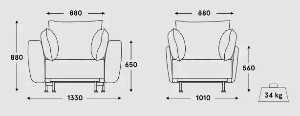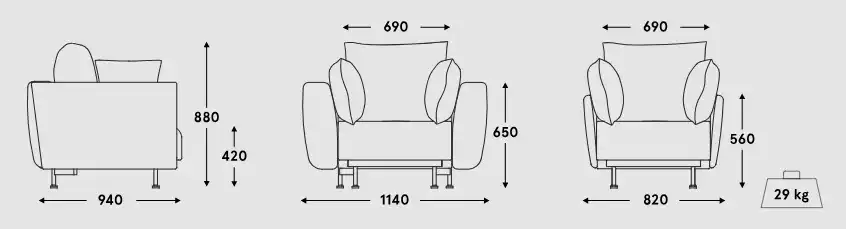 Lotus armchair is available in 2 widths – 690 and 880 millimeters: